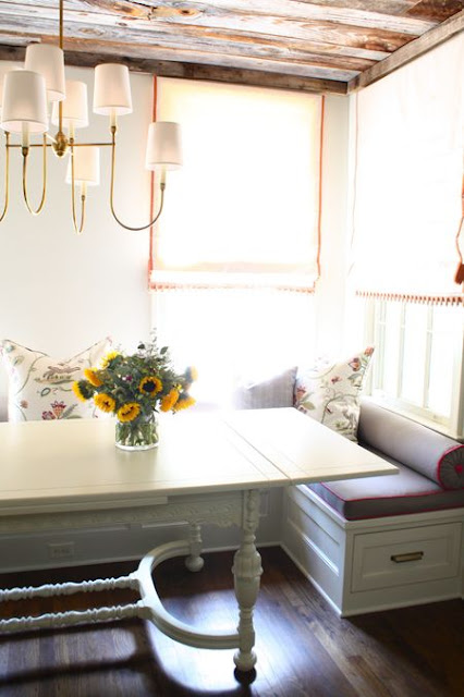I am in love with banquette seating and presented my favorite inspiration here! The images above and below are from interior designer Rachel Halverson who authors the popular blog Nest Egg. I love seeing designers real-life design projects and love everything about this kitchen renovation here.